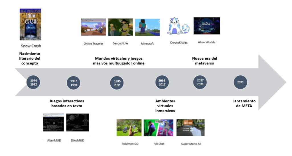 El desarrollo conceptual y tecnológico del metaverso ha seguido esta línea del tiempo: