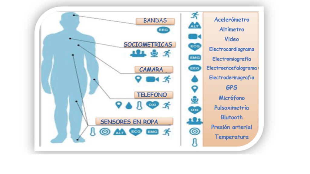 Estos dispositivos no son invasivos y se pueden desarrollar integrando varios sensores en accesorios portátiles, como relojes, pulseras, anillos, collares, camisas, zapatos, bolsos, gorras; hay otros en los que se integran varios sensores (incluidos sensores de latidos cardíacos, temperatura corporal y presión arterial) para monitorización remota y análisis de bioseñales como patrones electrocardiográficos (ECG) y electromiografía (EMG), con la ayuda de sistemas portátiles habilitados para extraer información del paciente, en general todos funcionan en una forma muy similar (2) (ver figura 2).