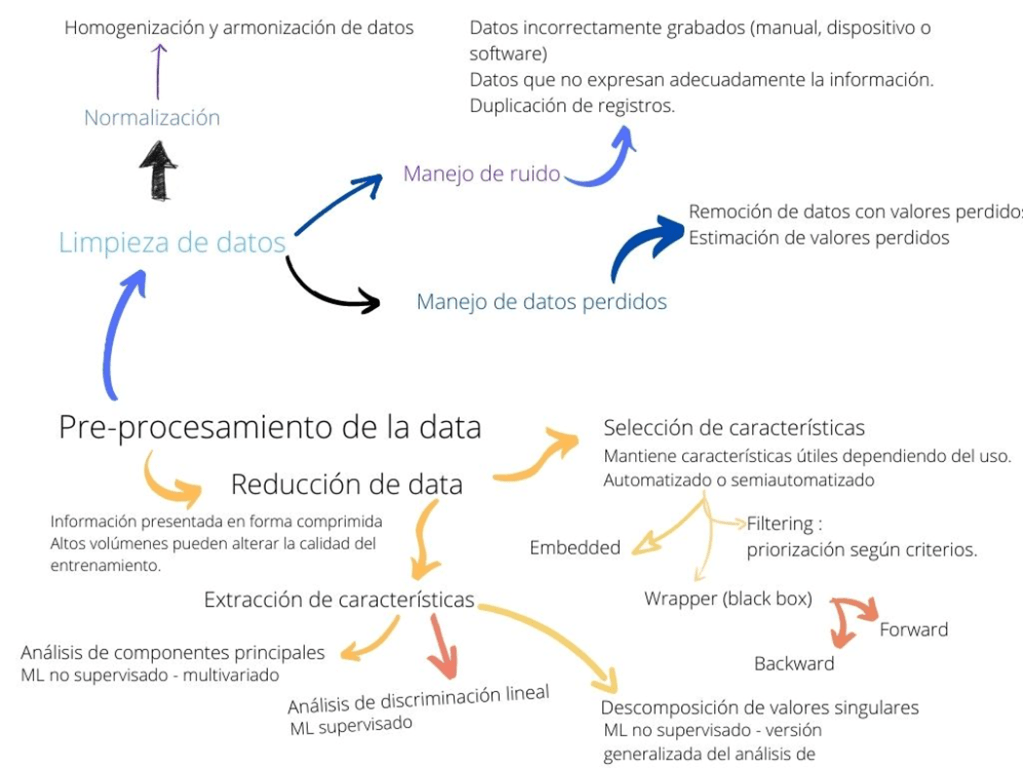 Ante el gigantesco volumen de información se hace necesario el pre-procesamiento de los datos base  (“raw data”) para que estos sean útiles, analizables e interpretables.  Esta preparación del dato se realiza a través de métodos estadísticos avanzados, algoritmos y otras herramientas computacionales (2, 5, 6).