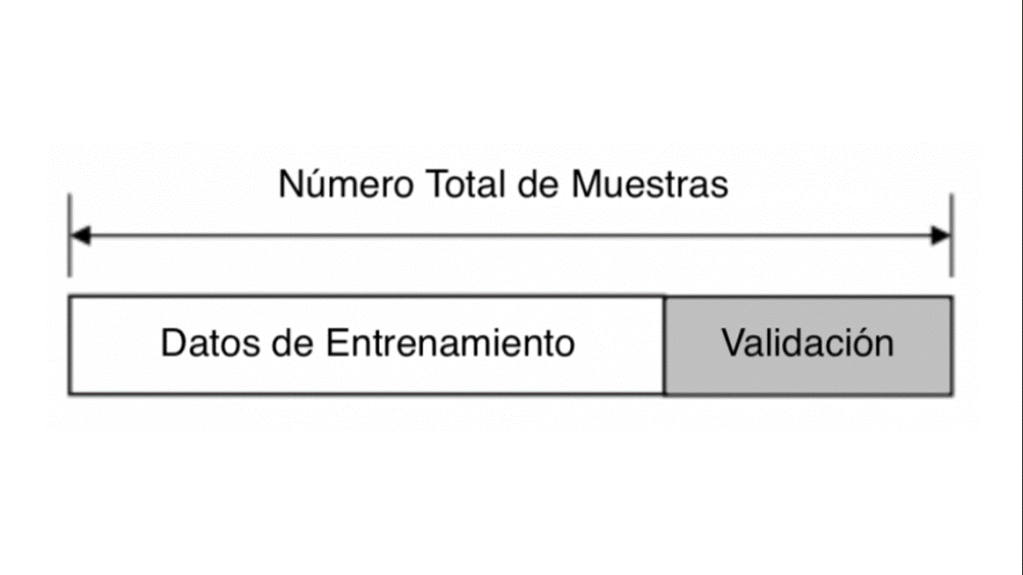 Método de retención (Holdout): La forma de evaluar cuando un modelo esta subajustado, sobreajustado o en su defecto equilibrado, consiste en dividir el conjunto total de datos,particionado en 2 conjuntos disjuntos tomando un grupo de muestras para datos de entrenamiento (training dataset ), y otro grupo para muestras de validación (test dataset), el conjunto de datos de validación ayuda a proporcionar una evaluación imparcial de la aptitud del modelo, de esta forma no solo se califica el entrenamiento, sino que se pueden comparar métricas de entrenamiento y pruebas para saber que tan predictivo es el modelo. Se prefiere mantener una relación entre el entrenamiento y validación de 2/3 y 1/3 respectivamente, ósea que el entrenamiento sea mayor que el de las pruebas de validación, si el tamaño de los datos de entrenamiento es pequeño se aumenta la varianza y si el error en el conjunto de datos de validación aumenta, entonces tenemos un modelo de sobreajuste.