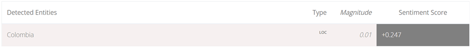 La única entidad detectada fue Colombia, entendiendo que es un texto más corto que el de Colombia Humana. No se hace alusión a los candidatos ni a partidos.
