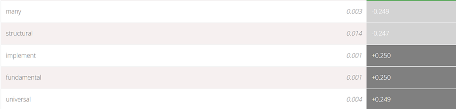 Las palabras calificadas como de sentimiento neutral son “mucho”, “estructural”, “implementar”, “fundamental” y “universal” que son muy diferentes a las palabras neutras de la propuesta de Colombia Humana.