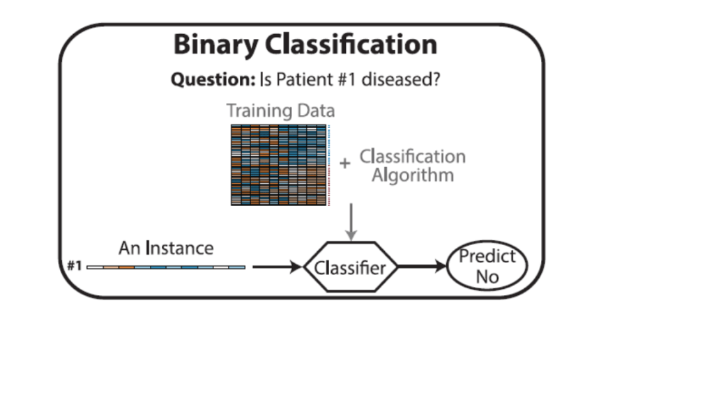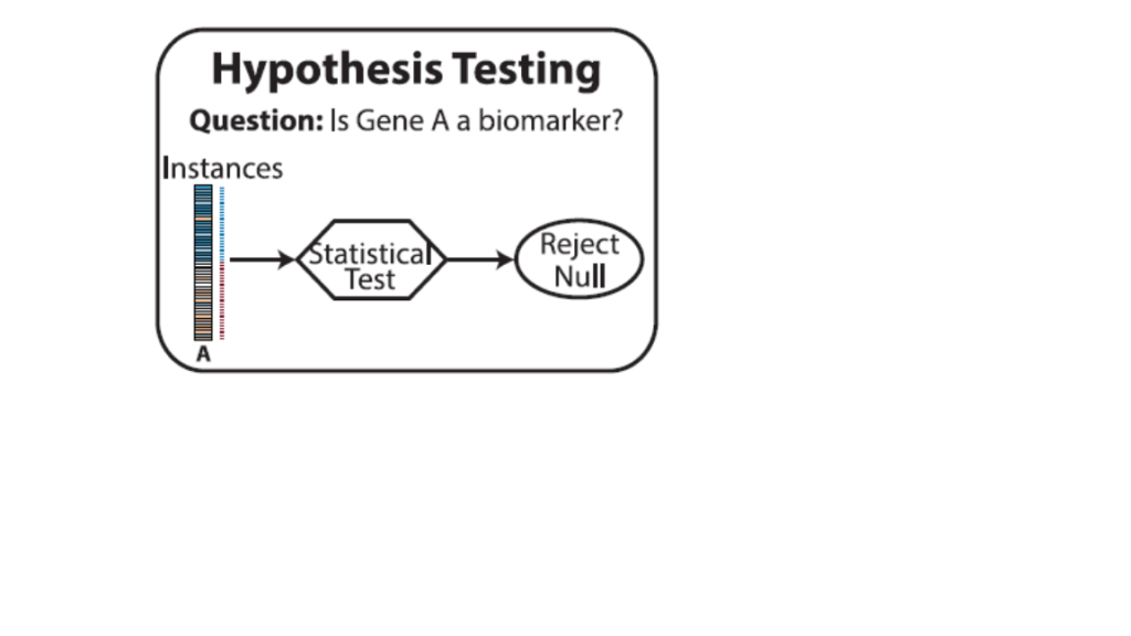 Las decisiones binarias se dividen en las asociadas a las características o variables y las relacionadas con otras instancias. Por ejemplo, definir si un gen es un biomarcador predictivo o no es una decisión asociada a las variables mientras que si un paciente tiene o no una enfermedad es una pregunta relacionada con las instancias. La validación de hipótesis responde únicamente a las preguntas asociadas con las variables mientras los modelos ML solamente lo hacen a las decisiones asociadas con las instancias.