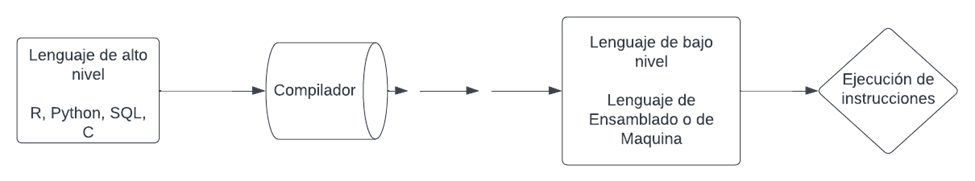 Un lenguaje de alto nivel como Python, R, Julia, JAVA, PHP tiene una sintaxis que es cercana al lenguaje que manejamos los humanos. Estos lenguajes tienen una estructura que utiliza palabras (generalmente inglés) y por lo tanto es relativamente fácil que nosotros lo podamos entender. Esto también hace que sean lenguajes más fáciles de aprender y utilizar para comunicar mensajes al computador.