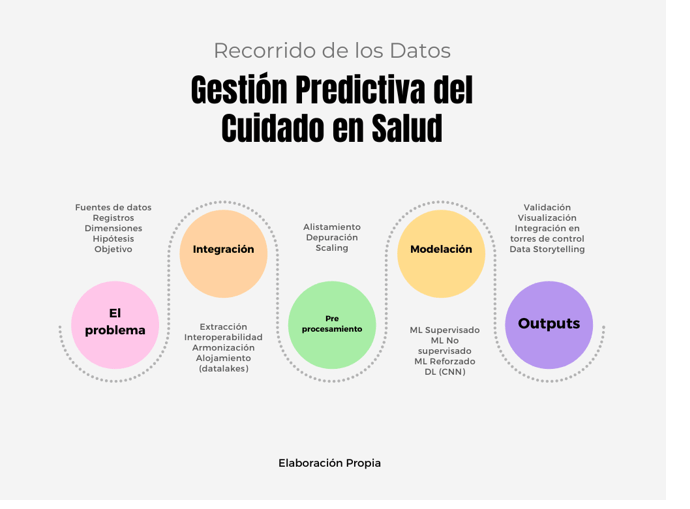 Los sistemas de salud avanzados deben movilizarse a gestión sobre predicciones bajo estructuras guiadas por datos multifuente que puedan capturar la travesía completa de los pacientes y la cadena de valor en salud, para ello los modelos de IA pueden y deben ser el soporte analítico.