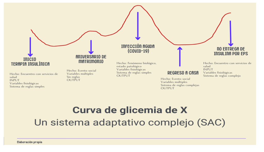 Un ejemplo de una situación compleja en salud es el paciente diabético, dado por la variabilidad en el diagnóstico, el tratamiento (farmacocinética/farmacodinamia), adherencia a las recomendaciones no farmacológicas y farmacológicas, el control glicémico, las complicaciones y las actividades de promoción de la salud.