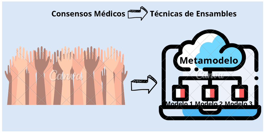 Ahora bien, el desarrollo de nuevas técnicas de IA permite que se apliquen modelos cada vez más avanzados, como las técnicas de ensamble que resultan de la combinación simultánea de varios modelos, donde se selecciona una única hipótesis, y se diseña un algoritmo para la combinación de los distintos modelos que logren la mejor predicción posible, es decir, aquella donde el sesgo y la varianza se reducen potencialmente, en comparación con la aplicación de un único modelo. Relacionado con las técnicas de ensamble que pueden ser aplicadas a la medicina, en particular al consenso, encontramos técnicas de ajuste de ensambles tipo “VOTING”, que nos pueden ayudar en la toma de decisiones, tema que será abordado en la próxima entrega…