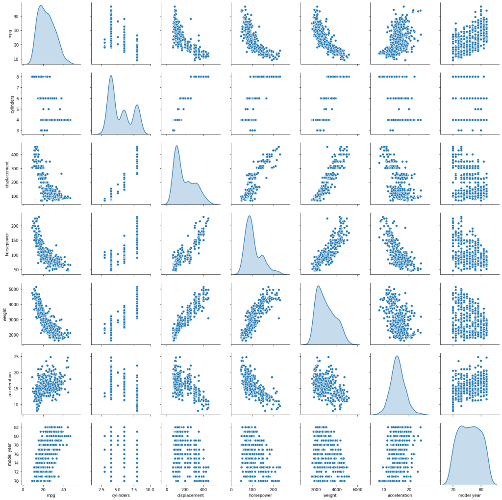 Nuestra variable objetivo es mpg la cual parece tener algun grado de correlación con horsepower y weight. Vamos a construir el modelo para verificarlo.