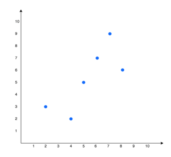 Tendremos la siguiente gráfica en un plano cartesiano (en este caso la variable dependiente es la calificación final (X) y la variable independiente es horas de estudio por día (Y))