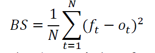 en la que N es el número de instancias de pronóstico, 𝑓𝑡 es la probabilidad calculada y 𝑜𝑡 el desenlace real del evento.