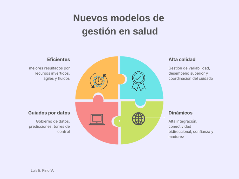 Los modelos de gestión en el sector salud deben evolucionar acorde con las necesidades derivadas de la complejidad misma de lo que en el hacemos, nos enfrentamos a sistemas complejos adaptativos bajo condiciones económicas restrictivas y en contextos culturales heterogéneos, con capacidades variables. Esto obliga a que los cuatro elementos esenciales de estos modelos modernos sean: