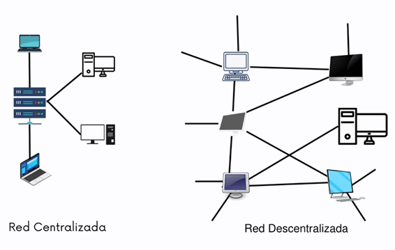 Se habla de una base de datos descentralizada pues no depende de un servidor, todos los equipos de computación que pertenezcan a la red donde se ejecuta el Blockchain, actúan como servidores y se denominan nodos (1).