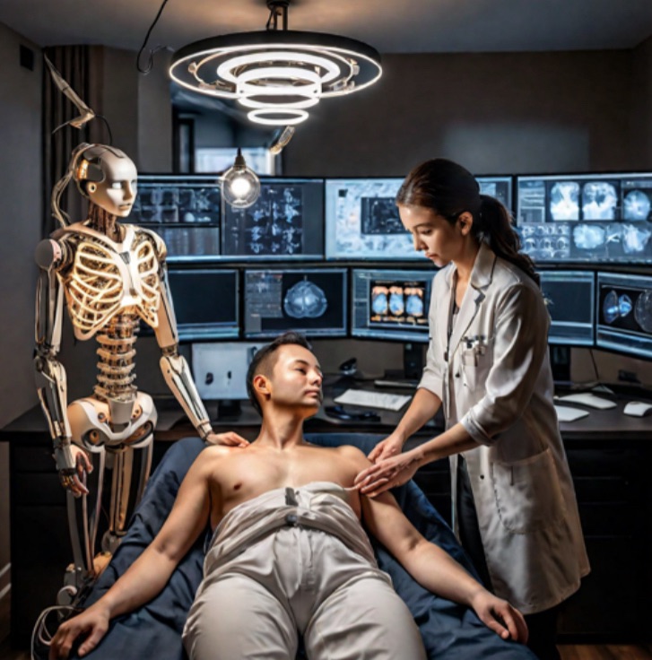 En este punto, en el que la velocidad en el desarrollo de IA se vuelve difícil de alcanzar para lograr su total entendimiento, el debate da un giro de 180 grados hacia los médicos-humanos mismos, para establecer como la IAestá modificando la práctica de la medicina, más allá de la precisión, productividad rendimiento y especialidad en la que se pueda pensar. En primera medida, el análisis que se pone urgentemente sobre la mesa es, como la IAforzadamente está haciendo a los médicos regresar hacia una corriente filosófica más humanista de la práctica clínica. Con esto no se pretende en lo absoluto restar importancia al gran humanismo ya de por si existente entre los médicos, que a pesar de las múltiples adversidades persisten con la idea romántica de la medicina al servicio de sus pacientes, incluso en entornos difíciles como los que se viven en nuestro país, sino que,por el contrario, la intención es la de retornar a esta discusión desde un punto de vista más vanguardista con un nuevo actor como la IA de por medio. Esta presión de la IA hacia los médicos para retornar a un humanismo como eje fundamental de la atención médica rememoran los temores del escritor Inglés Aldous Huxley en “Un mundo feliz”, donde ya advertía del avance de la tecnología para solución de los problemas de la sociedad al costo de la perdida de la humanidad. La inteligencia artificial sin duda, está forzando a la humanidad a volver a la humanidad para su propia supervivencia. En este caso el titulo original del libro de Huxley “Un mundo feliz” (Brave new World – Nuevo mundo valiente) sería mucho más acertado en este contexto del campo médico y los avances de la inteligencia artificial.