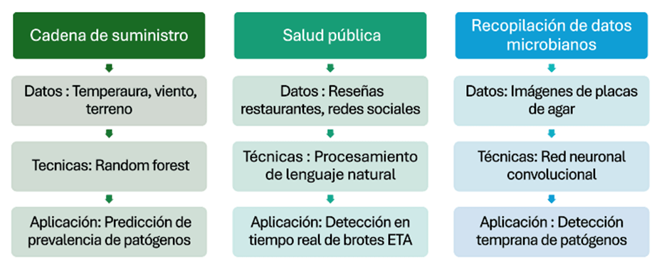 Figura 4. Usos de la IA en la seguridad alimentaria.Adaptado de How Can AI Help Improve Food Safety?(4).