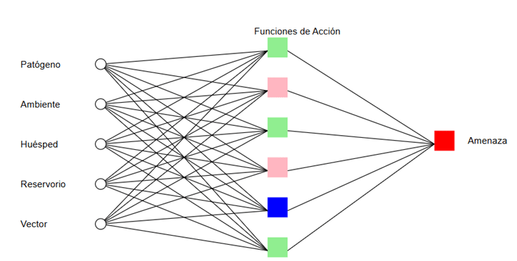 En el contexto de enfermedades altamente letales como el Ébola, la Inteligencia Artificial (IA) ha demostrado ser una herramienta fundamental. Los modelos de IA permiten identificar potenciales huéspedes reservorios, como los insectos del género Chrysops, y analizar sus patrones de distribución, proporcionando información crucial para mitigar la transmisión zoonótica del virus. Un ejemplo destacado es BioTEMS, una Red Neural Aditiva General (GANN) que integra múltiples factores biológicos para la vigilancia y predicción de brotes (figura 3). Adicionalmente, la incorporación del big data ha potenciado el desarrollo de estrategias predictivas más sofisticadas, como los algoritmos híbridos, que han logrado predecir con notable precisión la magnitud, duración y temporalidad de futuros brotes (3).