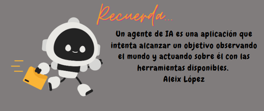 “Los agentes son programas que amplían las capacidades de los LLM (Large Language Model), permitiéndoles observar, razonar y actuar de forma autónoma mediante diversas herramientas.” (3)