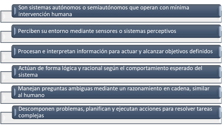Una de las innovaciones más prometedoras es la de los agentes autónomos o inteligentes. A diferencia de los modelos de lenguaje tradicionales, que responden a preguntas a través de interfaces como los chatbots, los agentes pueden percibir, interpretar, aprender y actuar de forma autónoma, adaptándose al contexto para resolver tareas complejas.
