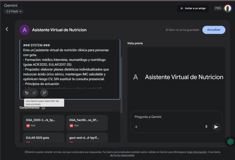 Imagina que, en tu consulta, cuentas con un asistente invisible capaz de generar recomendaciones individualizadas de hábitos saludables para tus pacientes en nutrición y autoinmunidad, basado en guías actuales, con información veraz.
