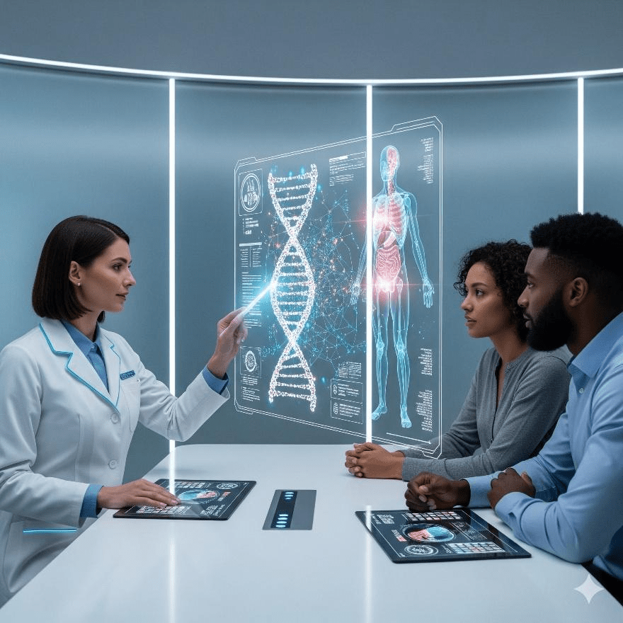 El futuro del asesoramiento genético no será exclusivamente presencial ni totalmente digital: será híbrido. Cuestionarios y chatbots podrán preparar al paciente antes de la consulta; el genetista seguirá siendo clave en la interpretación compleja y el acompañamiento emocional; y plataformas educativas reforzarán la comprensión después de la cita.