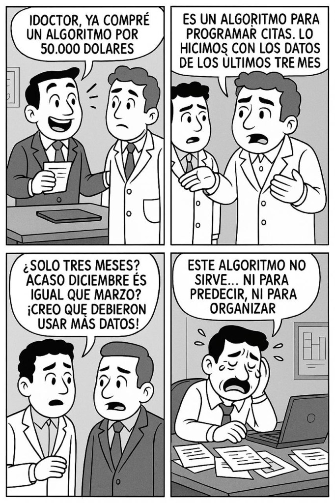 Para que la Inteligencia Artificial haga bien su trabajo, necesita datos limpios, bien organizados y confiables. Si la organización es inmadura, la información suele ser puro ruido. Un algoritmo alimentado con datos incompletos o mal anotados va a terminar dando recomendaciones que no son. En medicina, un error de esos no es un simple fallo del computador, es una vida en juego. Como dice la ciencia, si los datos no tienen una estructura clara, el sistema va a fallar.