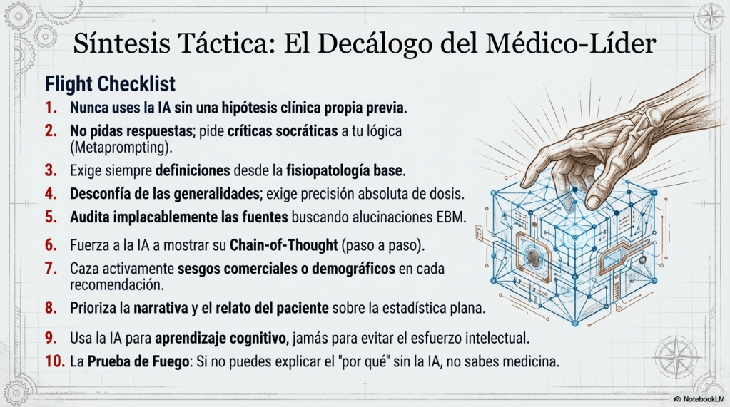 El clímax de esta soberanía se resume en un mandato profesional, si no puedes explicar el «por qué» de una decisión médica sin mencionar a la IA, has dejado de saber medicina; has perdido el liderazgo.